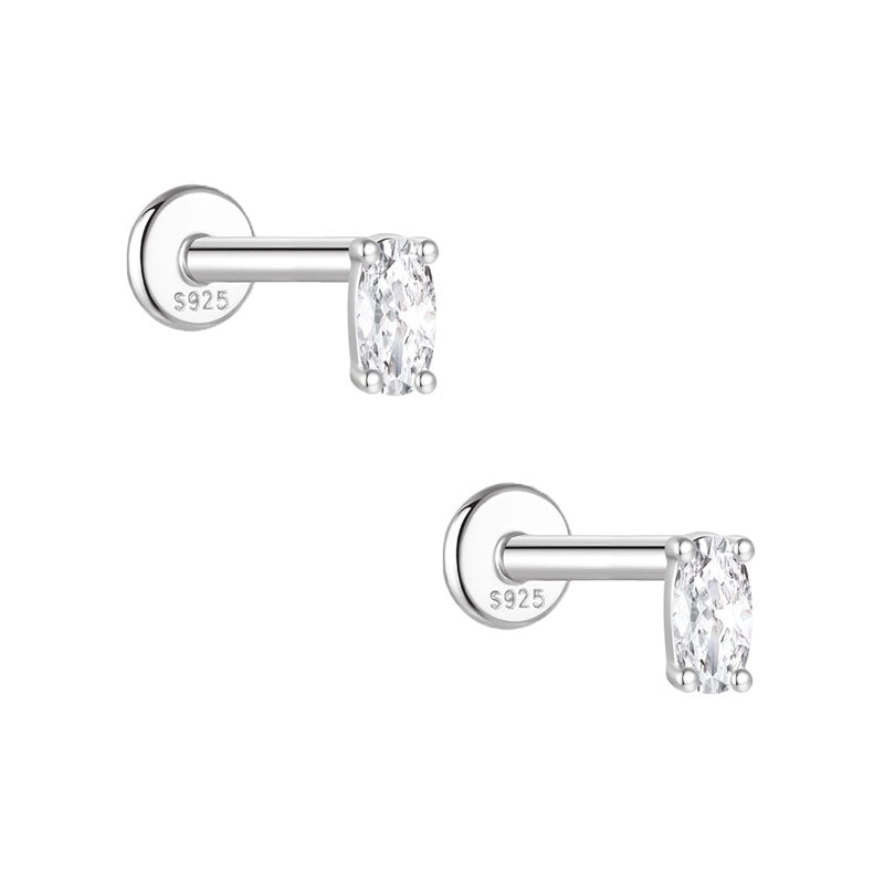 Minimalist Oval Moissanite Flat Back Earrings 925 Sterling Silver Tiny Elegant Piercing Jewelry