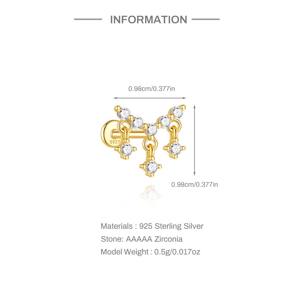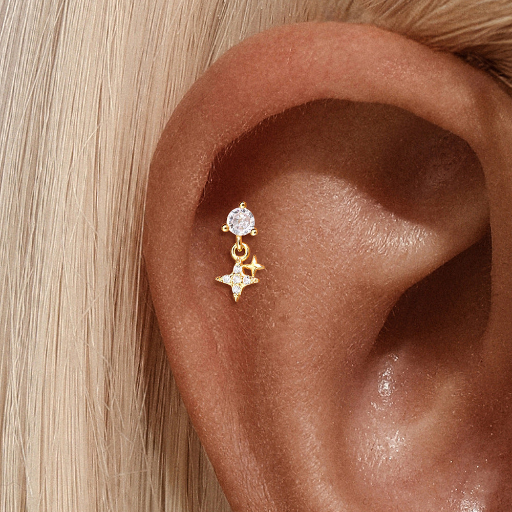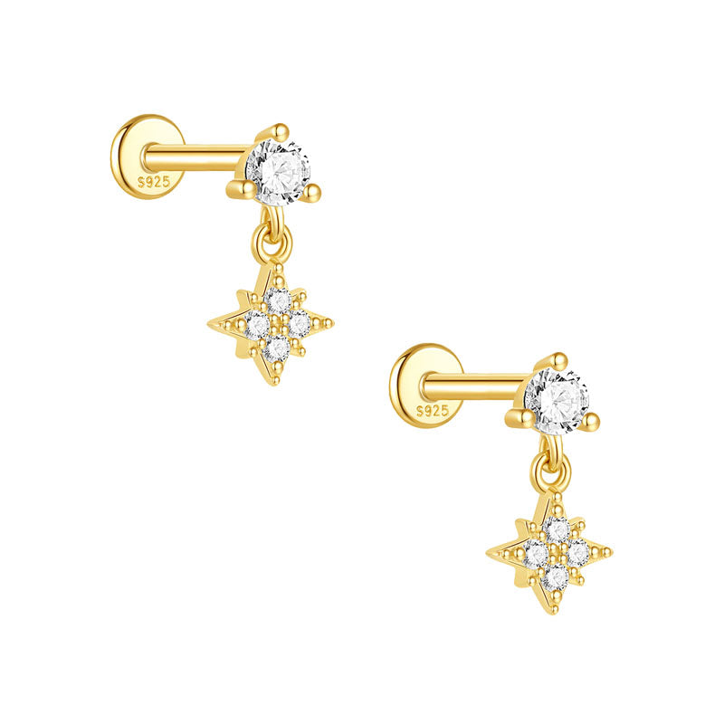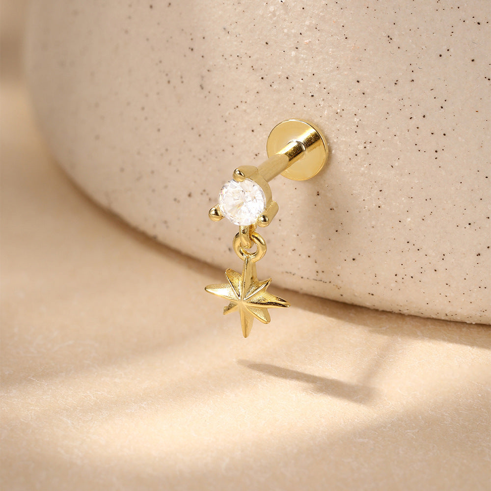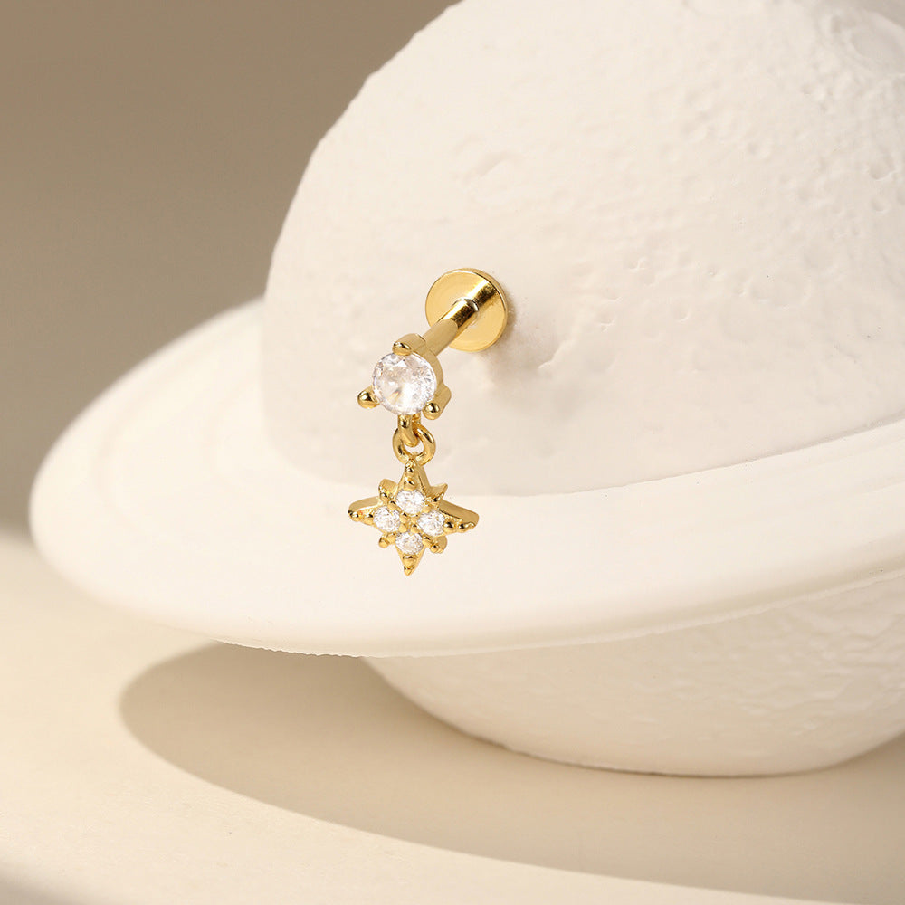 North Star Dangle Flat Back Earring S925 Sterling Silver Zircon Cartilage Jewelry