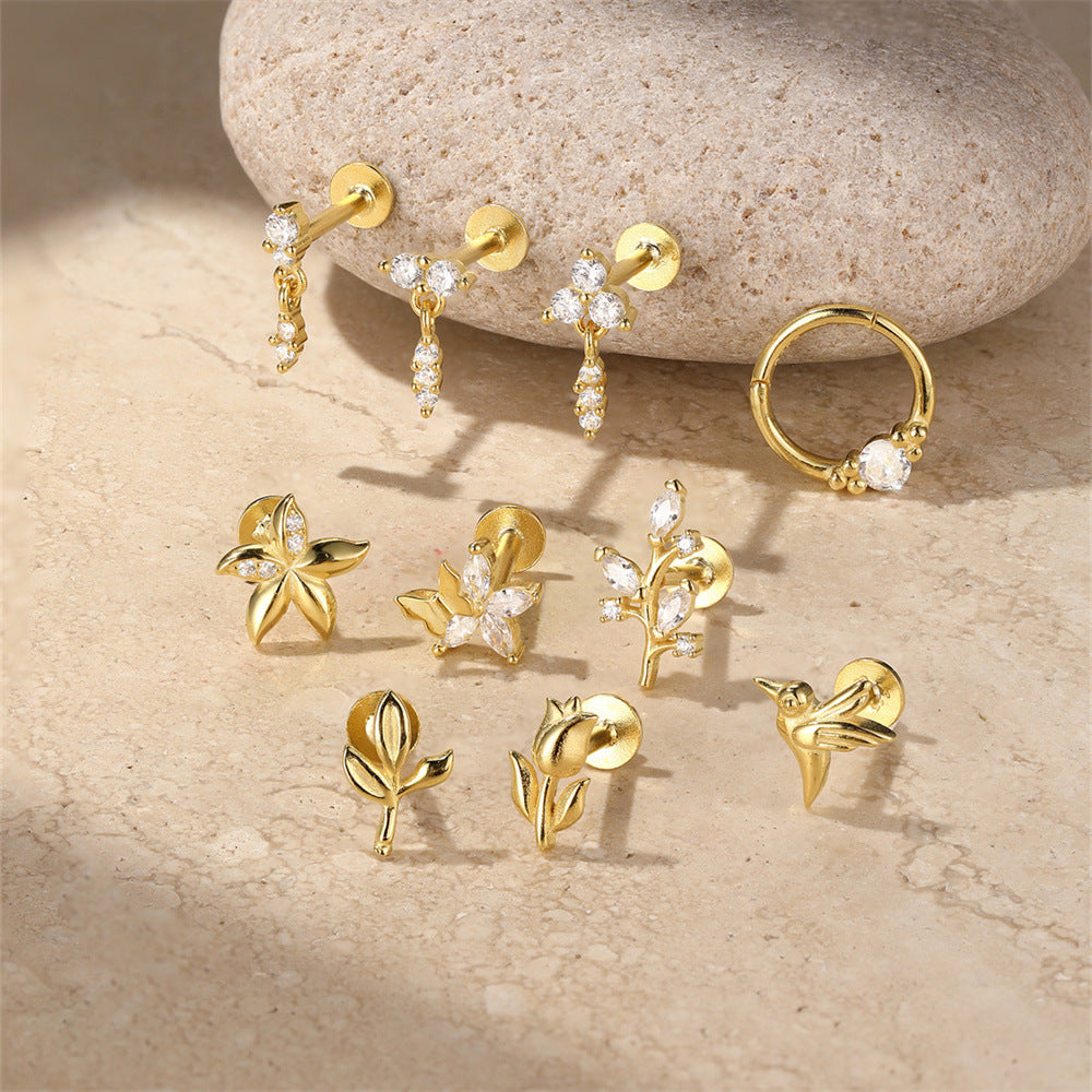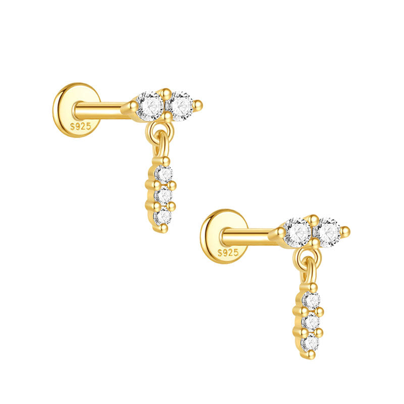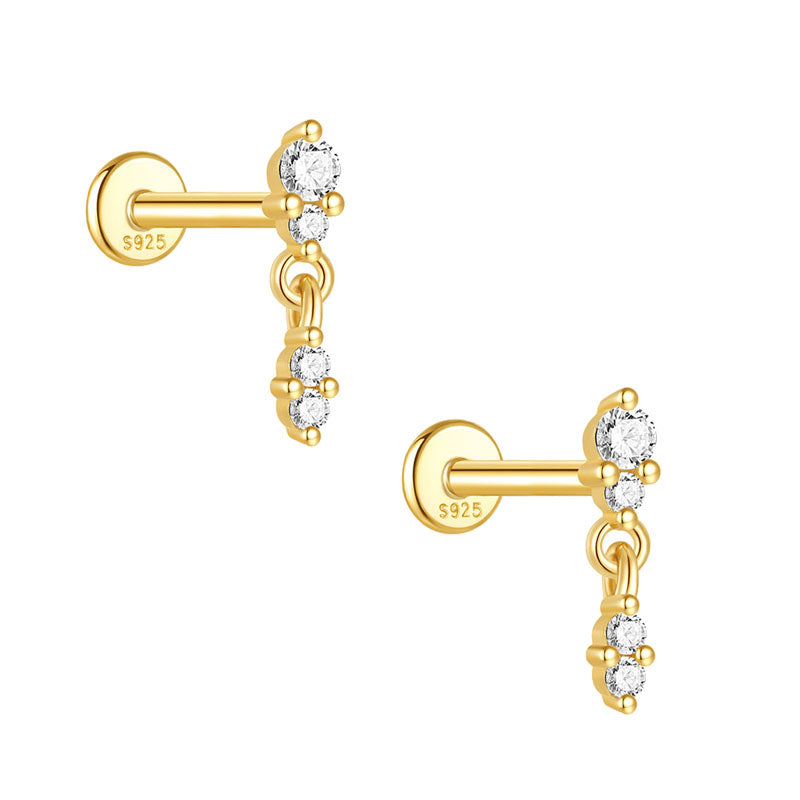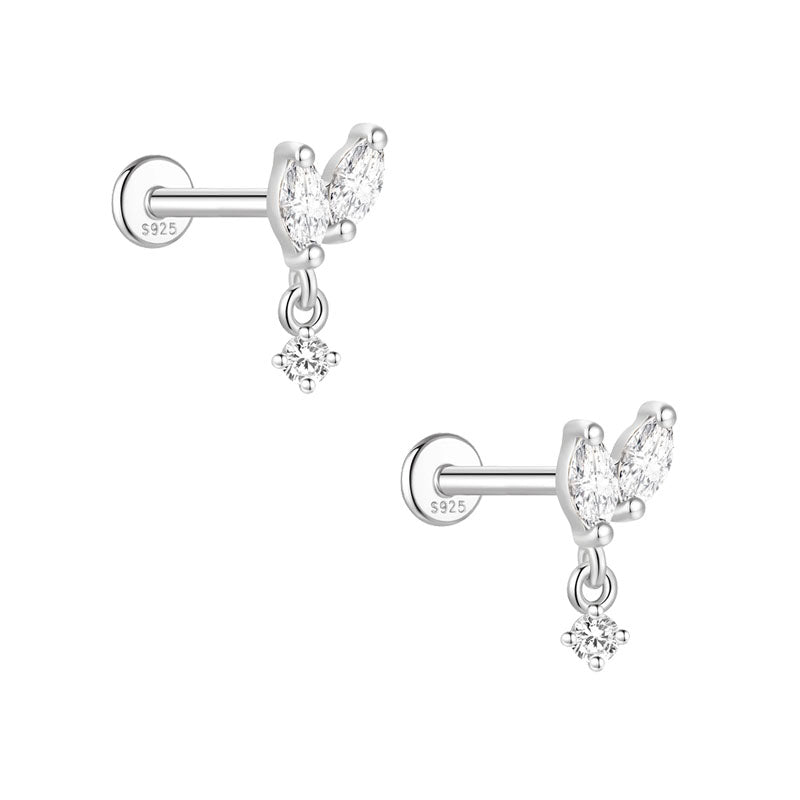 Petal Dangle Flat Back Earring S925 Sterling Silver Zircon Gold Cartilage Jewelry