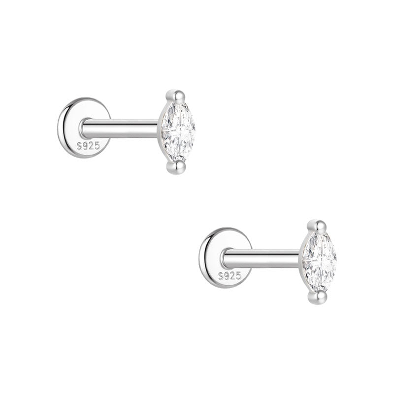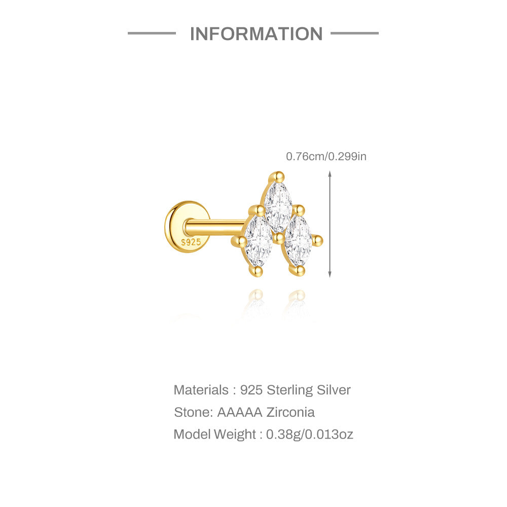 Triple Marquise Zircon Flat Back Earring S925 Sterling Silver Cartilage Jewelry Gold Plated 5A Zircon Comfort Fit Design