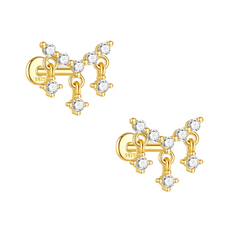S925 Sterling Silver Butterfly Dangle Flat Back Earrings 5A Zircon Gold Plated Comfort Fit