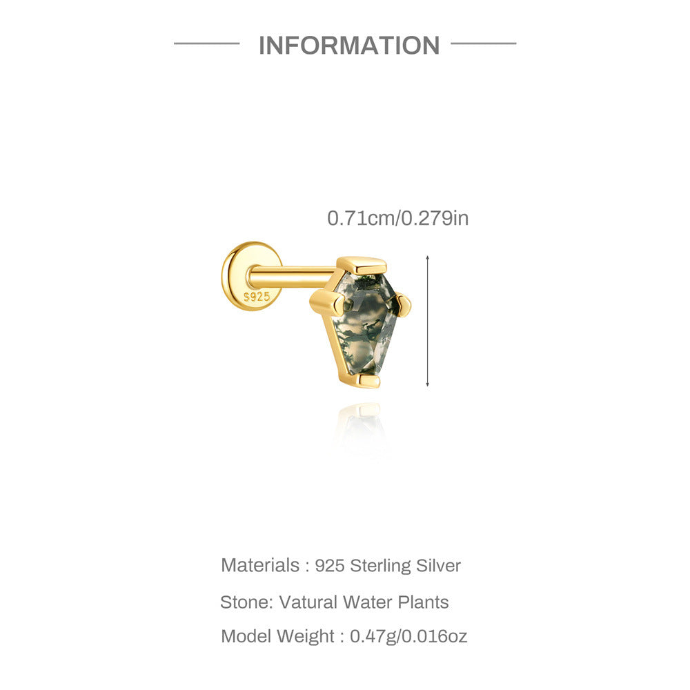 Natural Moss Agate Diamond Cut Flat Back Earring S925 Sterling Silver Gold Plated Delicate Cartilage Jewelry