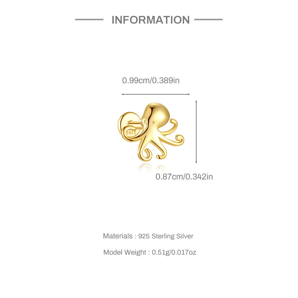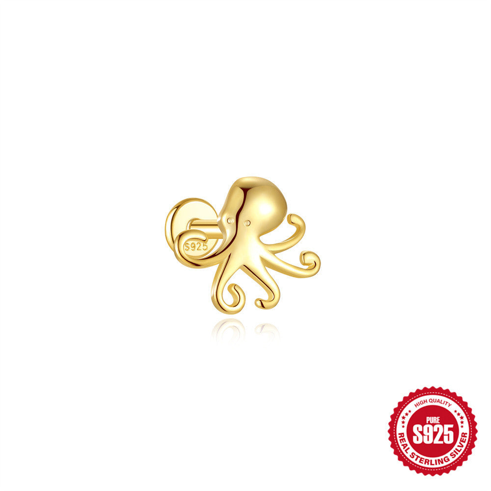 Octopus Shaped Flat Back Earring S925 Sterling Silver Dainty Sea Animal Cartilage Jewelry