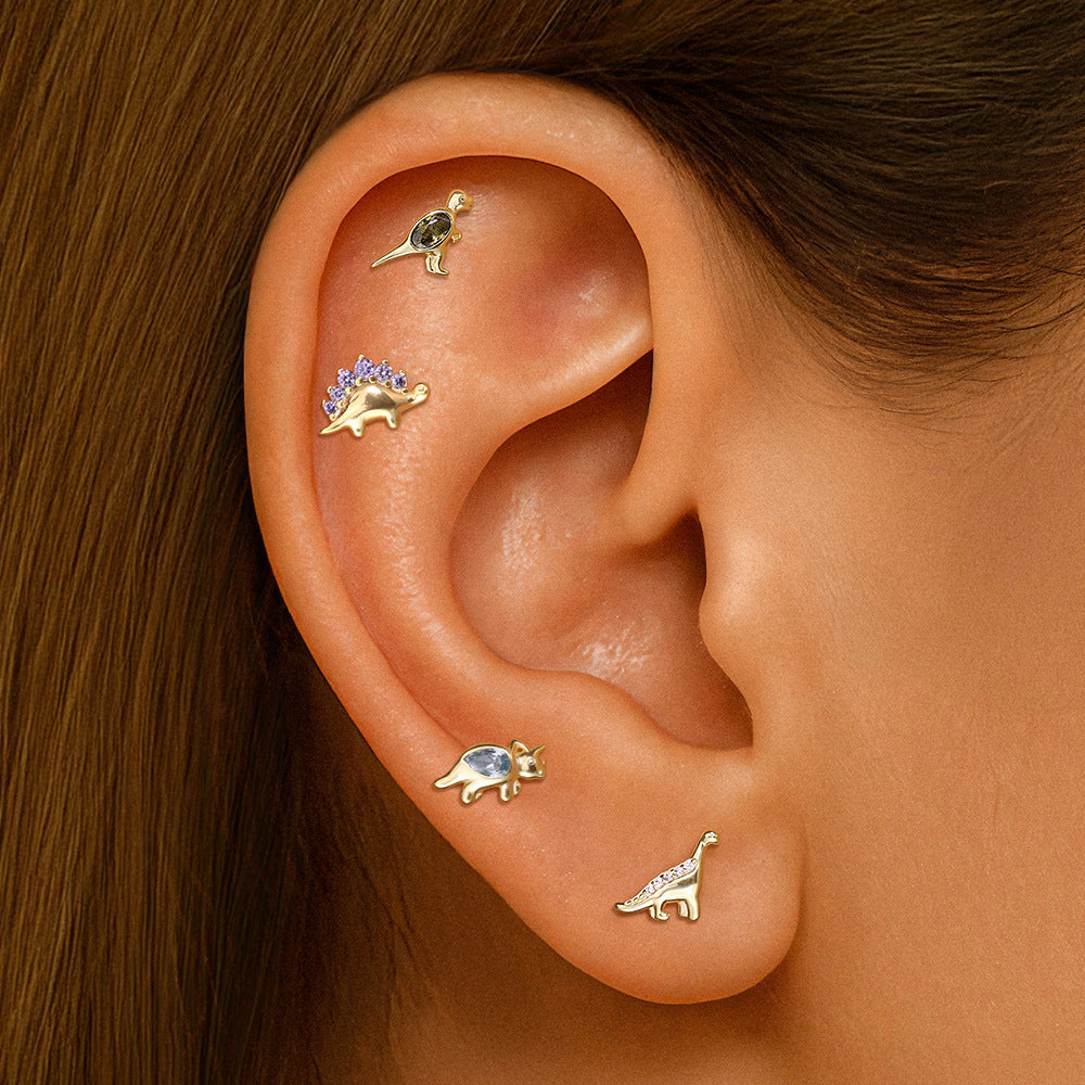 Purple Zircon Stegosaurus Flat Back Earrings 925 Sterling Silver Dinosaur Cartilage Jewelry