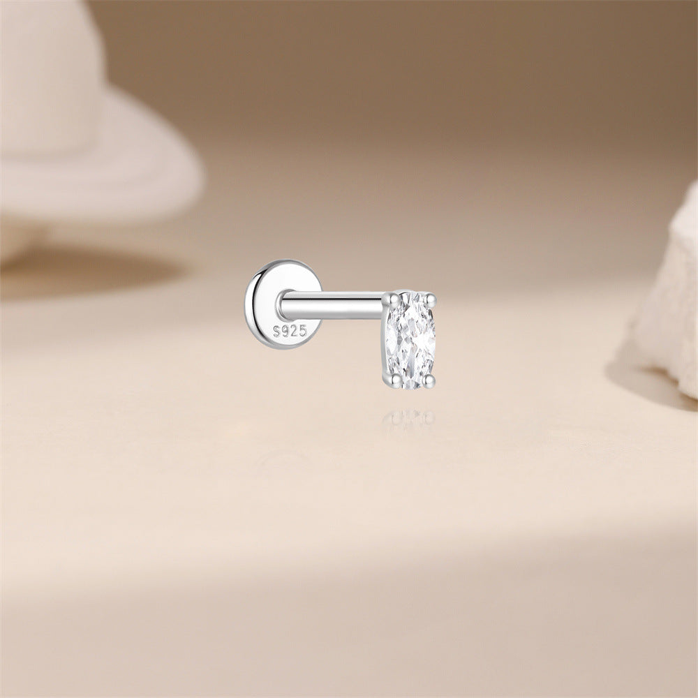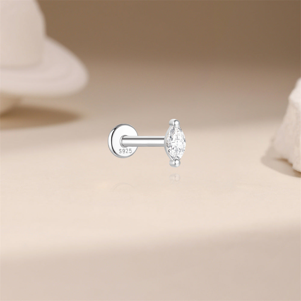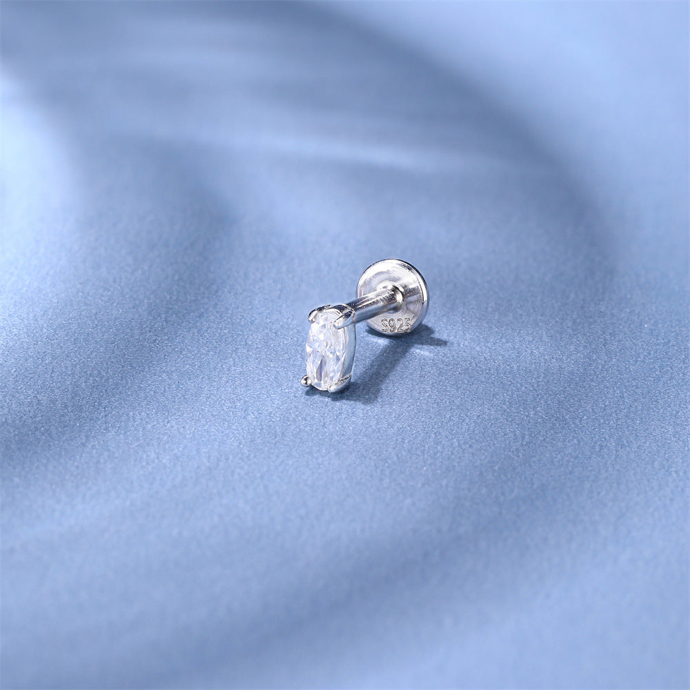 Marquise Cut Moissanite Flat Back Earring S925 Sterling Silver Delicate Cartilage Jewelry