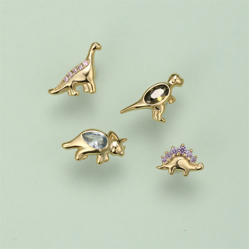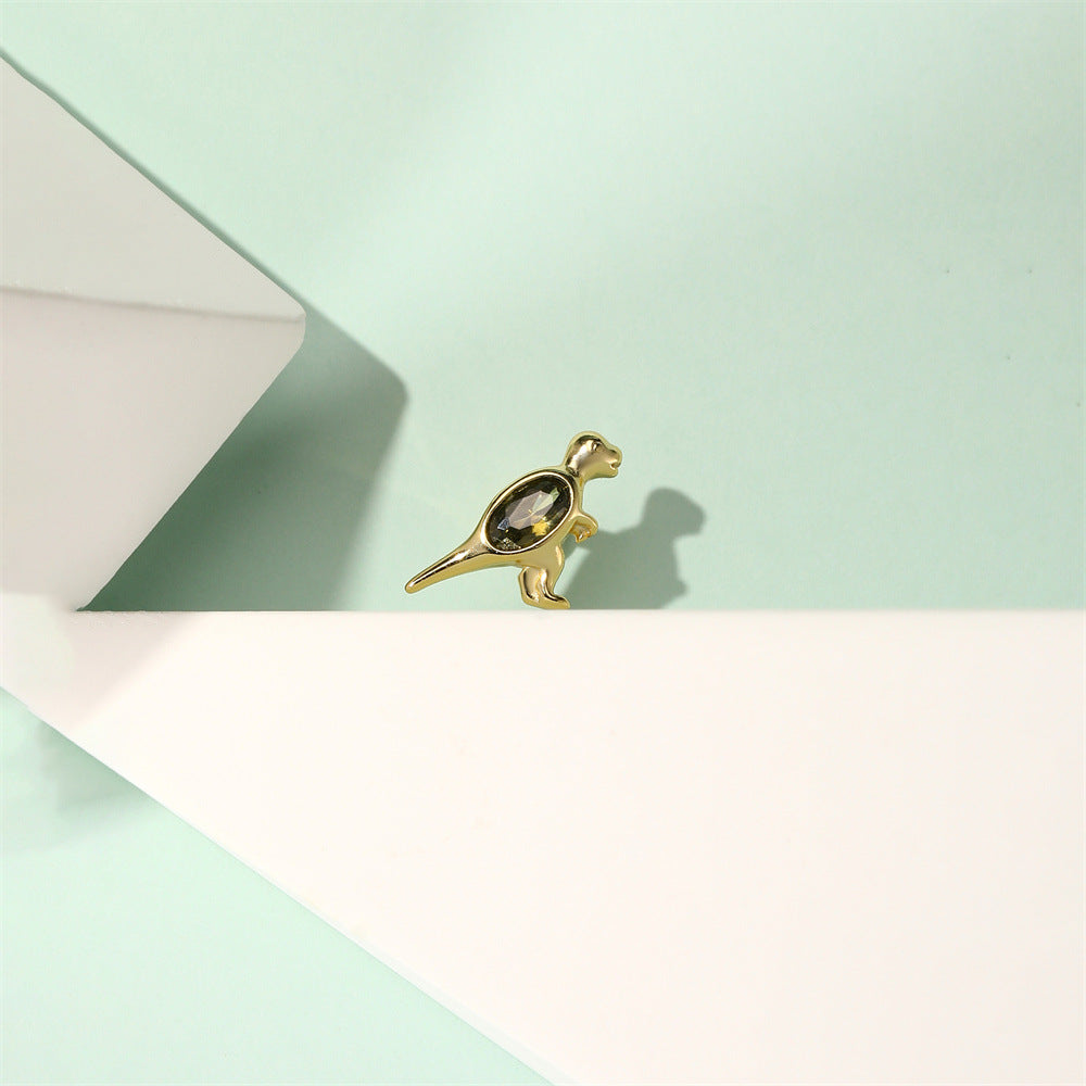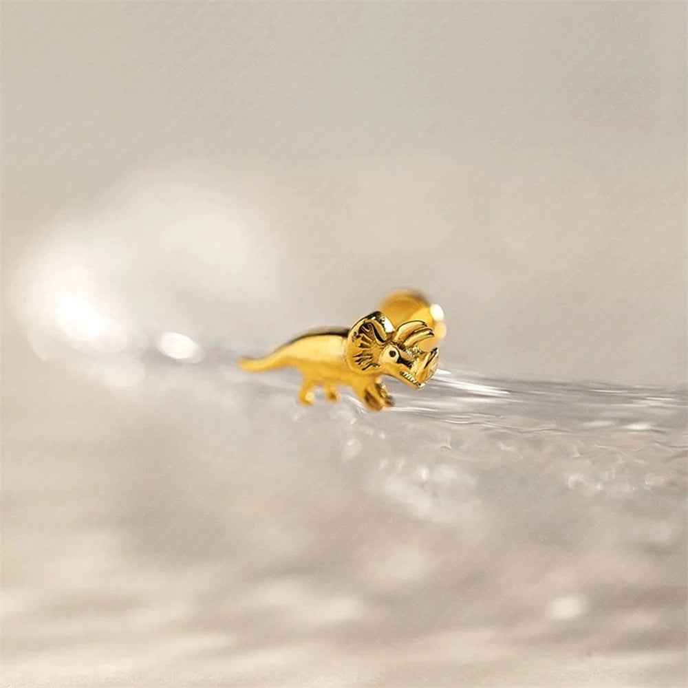 Gold Plated Dinosaur Flat Back Earrings S925 Sterling Silver Comfort Fit Cartilage Jewelry