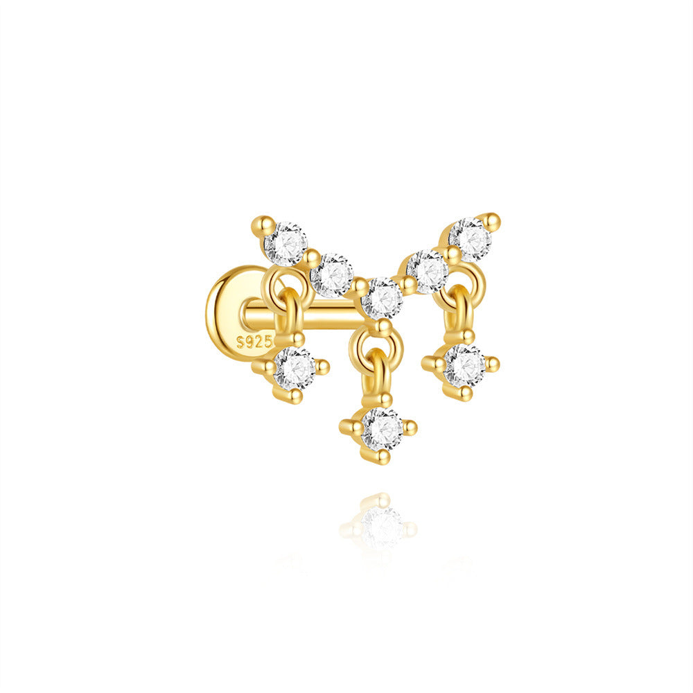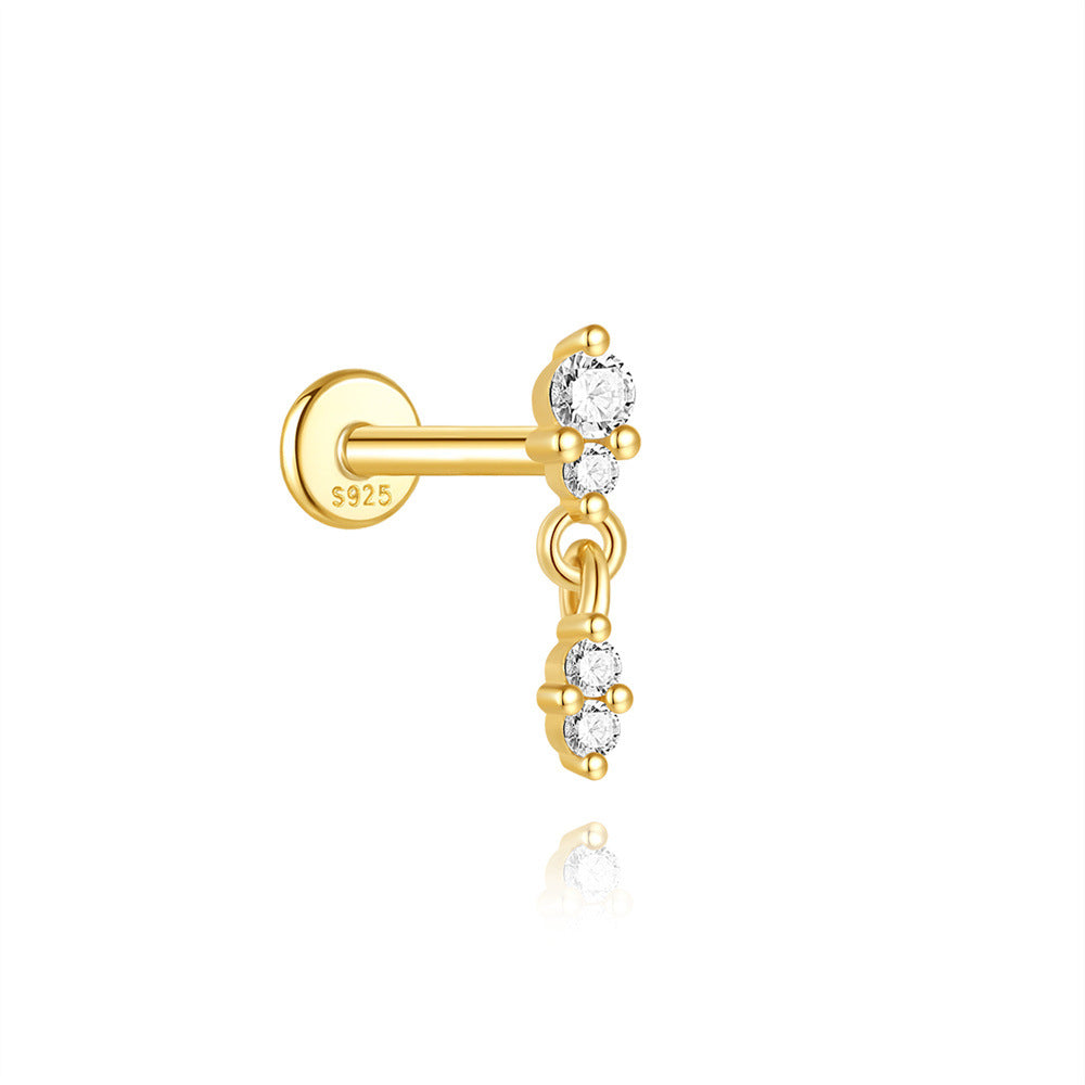 Zircon Tassel Flat Back Earring - S925 Sterling Silver Gold Niche Design Cartilage Jewelry