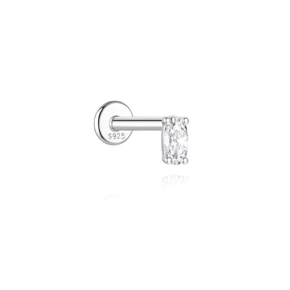 Semicircular Zircon Flat Back Earring - S925 Sterling Silver Dainty Cartilage Jewelry