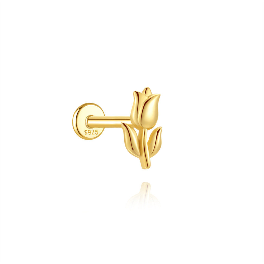 Tulip Flat Back Earrings 925 Sterling Silver Gold Plated Cartilage Jewelry
