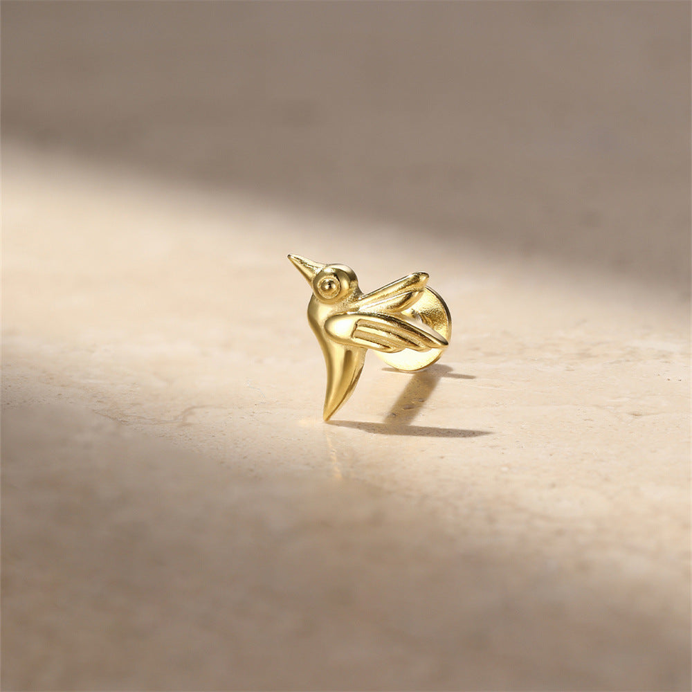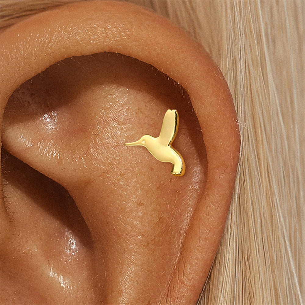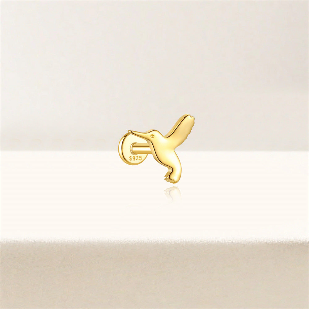 S925 Sterling Silver Hummingbird Flat Back Earrings Dainty Animal Cartilage Jewelry for Everyday Wear