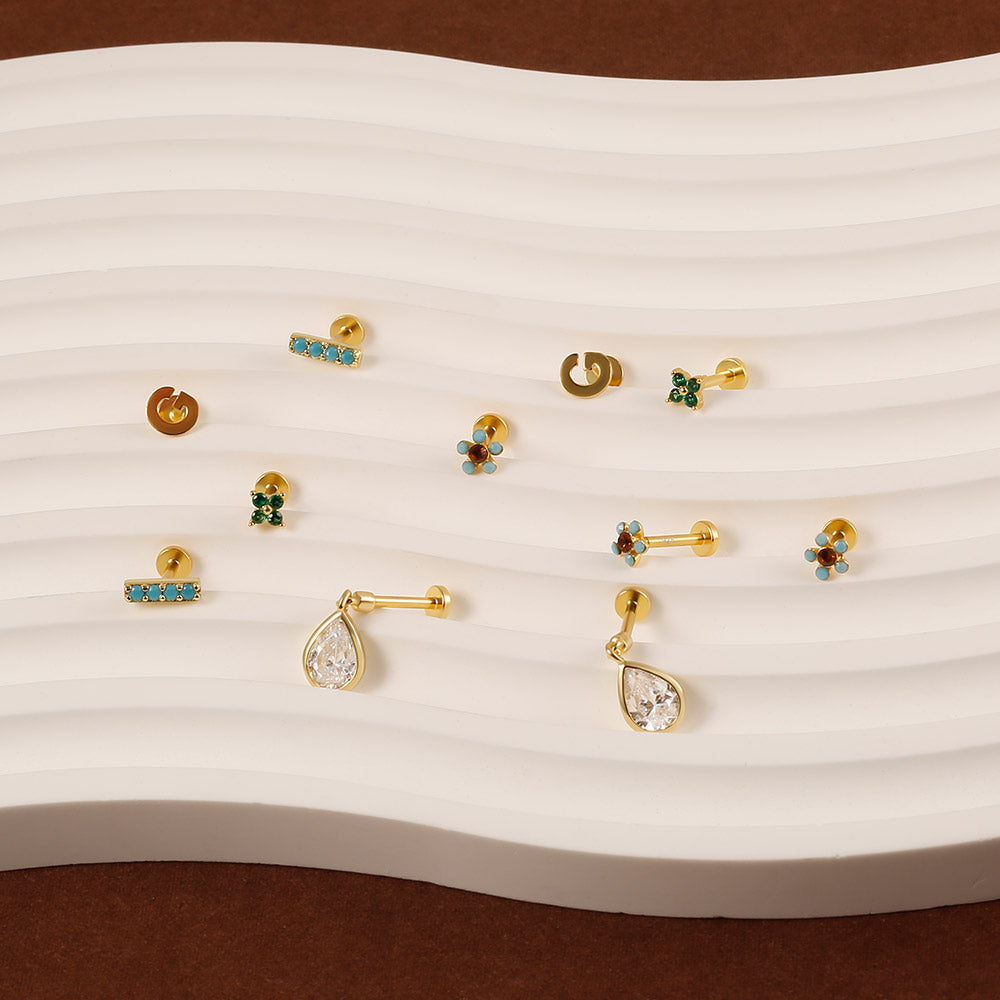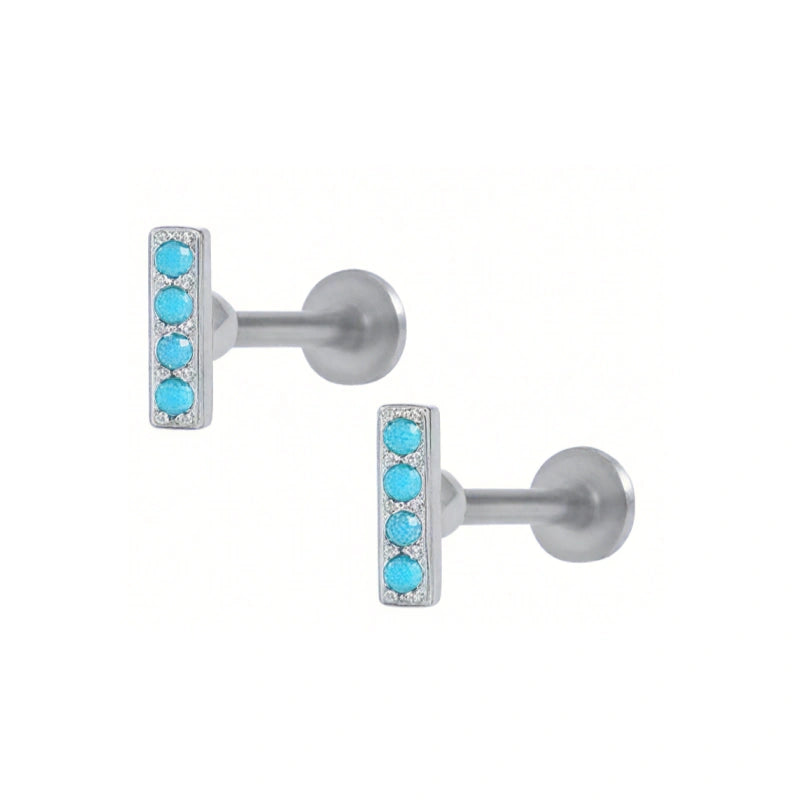 Turquoise Double Gemstone Flat Back Cartilage Earrings