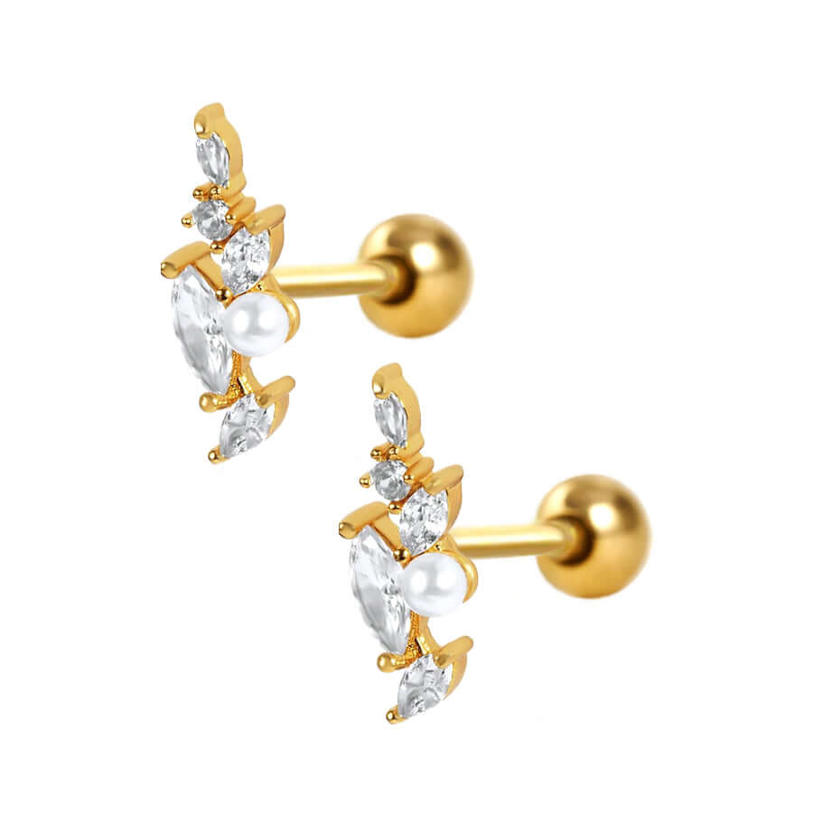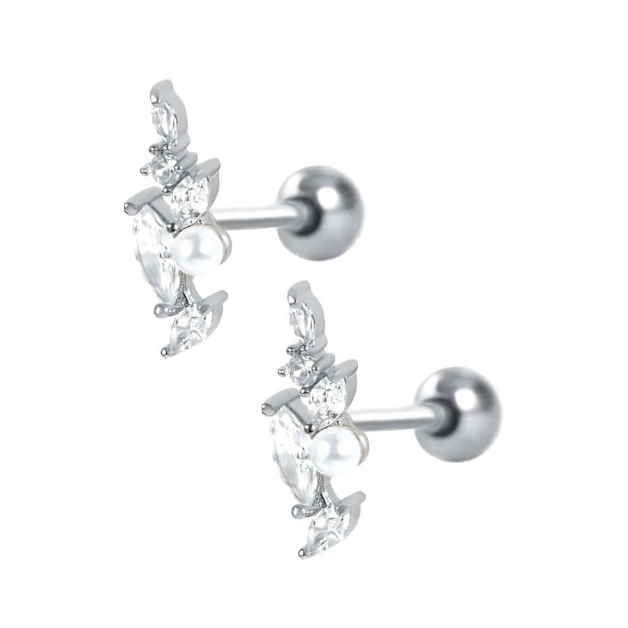 Floral Pearl Piercing Barbell Earrings Ball Back Earrings Sleeper Earrings