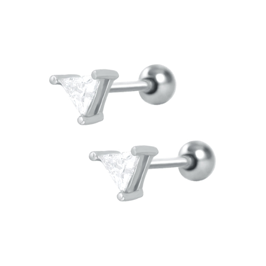925 Silver Triangle CZ Diamond Ball Back Earrings