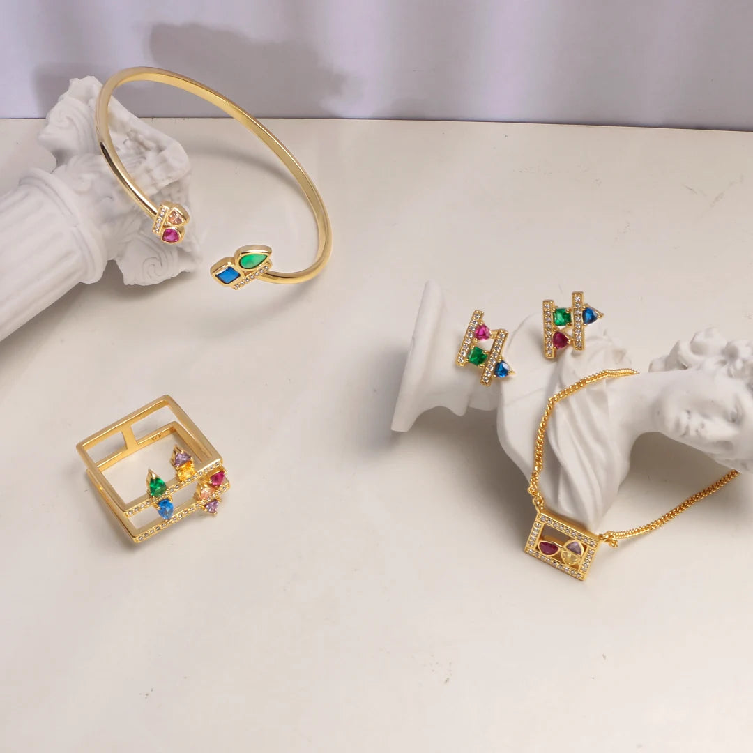 عالية الجودة زركونيا مكعبة فاخرة ، وطبقة نهائية طويلة الأمد مطلية بالذهب عيار 14 قيراط خالية من النيكل والرصاص ومضادة للحساسية