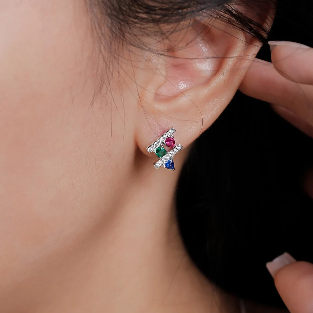 Moyo Flat Nyuma Floral CZ Diamond Stud Earrings