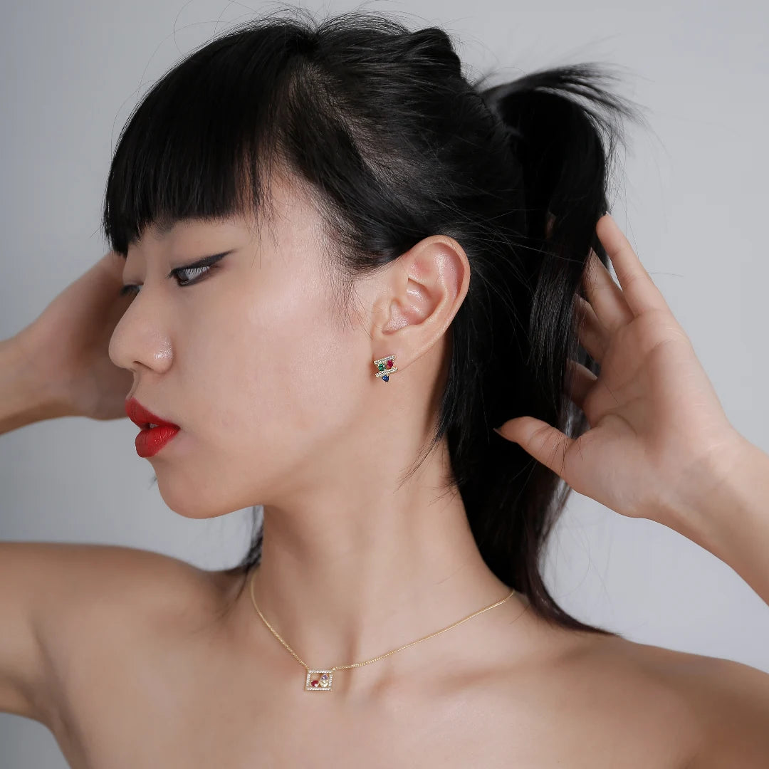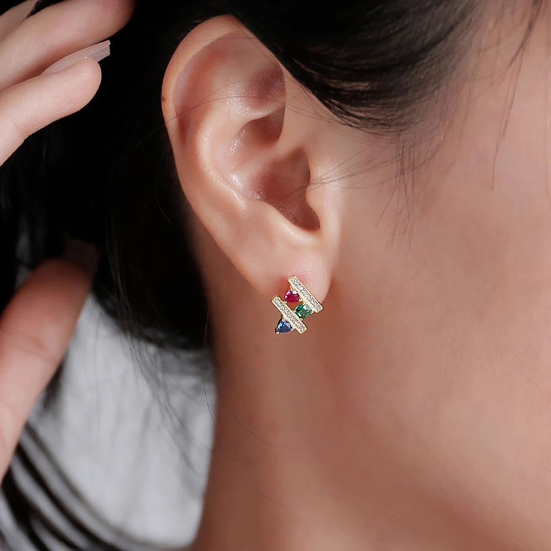 Claw ya Dhahabu Weka CZ Diamond Hoop &Huggie Earrings